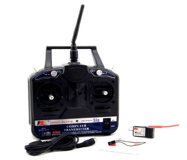 Комплект 6-канальной радиоаппаратуры FlySky FS-CT6B с 6-канальным приёмником FS-R6B для радиоуправляемых моделей самолётов, вертолётов и планеров.