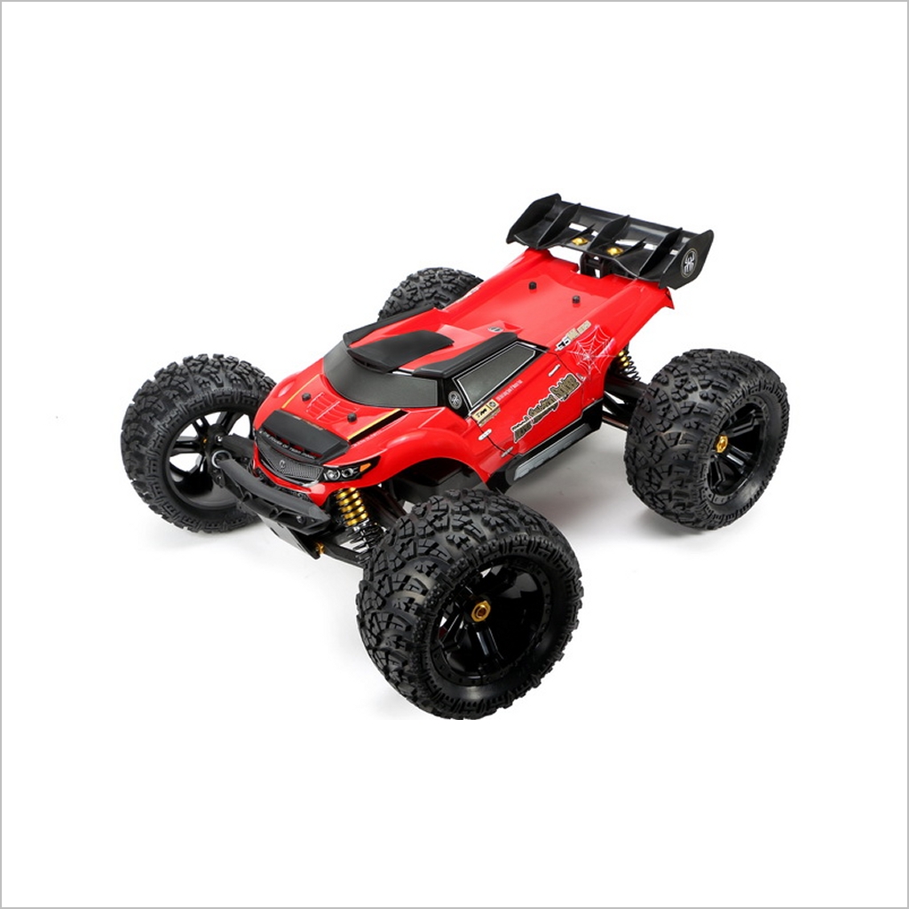 В этой конфигурации собрано всё самоё лучшее: самая мощная бесколлекторная система для масштаба 1:8 с поддержкой Li-Pol 6S аккумуляторов, длинноходная подвеска повышенной прочности с маслянными амортизаторами, прочный передний бампер, внедорожные колеса увеличенного размера, новые дифференциалы, усиленная трансмиссия, включающая более прочные карданные валы из высококачественной стали, а также чехлы на центральном кардане, для защиты шарниров от пыли и грязи. Большая часть деталей каркаса машины изготовлена из металла.