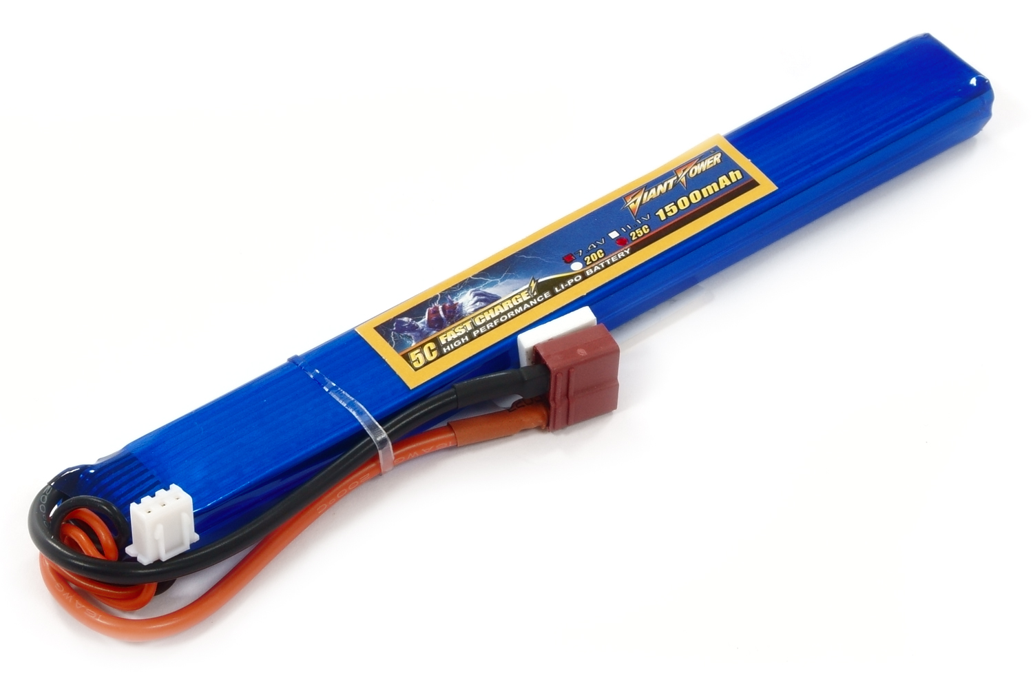Аккумулятор для страйкбола Giant Power (Dinogy) Li-Pol 1500 мАч 7.4 В 167x19x15 мм T-Plug